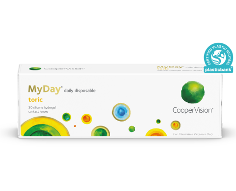 - Jednodenné šošovky MyDay® toric sú plastovo neutrálne. CooperVision kompenzuje plastový odpad za každú predanú a distribuovanú škatuľku šošoviek MyDay® toric.#2
