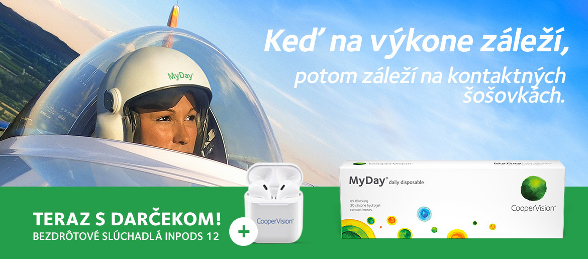 K nákupu 2 balení jednodenných kontaktných šošoviek MyDay dostanete vianočný darček – bezdrôtové slúchadlá Inpods 12. Akcia platí vo vybraných optikách od 24. 11. 2020 do 30. 1. 2021 alebo do vyčerpania zásob. Farba slúchadiel sa môže líšiť.